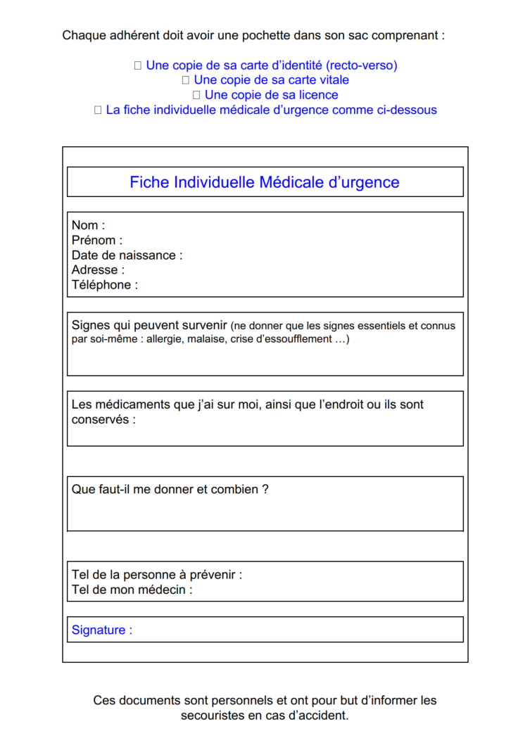 La fiche individuelle médicale d’urgence comme ci-dessous